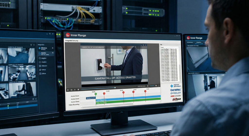 - Czy Inner Range obsługuje integrację z systemami CCTV?Tak, Inner Range integruje się z systemami CCTV, umożliwiając synchronizację zdarzeń alarmowych z nagraniami wideo. Operatorzy mogą przeglądać nagrania powiązane z konkretnymi zdarzeniami dostępu lub alarmów. Integracja zwiększa skuteczność monitoringu i pozwala na szybką weryfikację incydentów. System wspiera różne protokoły i urządzenia wideo. To ważna funkcja dla kompleksowego bezpieczeństwa.
